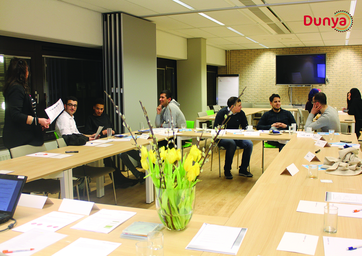Investeren in de ontwikkeling van onze vrijwilligers is voor Stichting Dunya van cruciaal belang en om deze reden organiseren wij regelmatig trainingen voor de vrijwilligers. Gisteren is er in samenwerking met VanMontfoort een communicatietraining aangeboden aan de begeleiders van de Huiswerkbegeleiding Plus+. VanMontfoort is een adviesbureau gelegen in Woerden dat zich op verschillende werkterreinen richt, van jeugdzorg tot gezondheidszorg. Naast adviezen en onderzoeken worden er dus ook opleidingen en trainingen aangeboden. Gedurende de training werd de vrijwilligers een hoop informatie en handvatten aangereikt over het begeleiden van jonge kinderen en pubers. Naast het feit dat wij veel praktische kennis hebben opgedaan, is het een onwijs gezellige training geworden voor het Dunya team. Wij van Stichting Dunya willen VanMontfoort dan ook enorm bedanken voor een geslaagde avond!